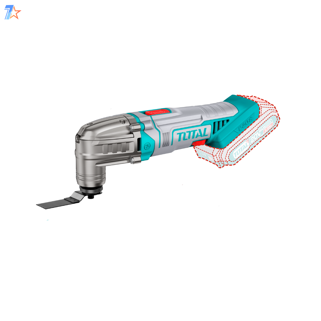 TOTAL TMLI20228 Cordless Multi-Tool is a versatile tool designed for various cutting, sanding, scraping, and grinding tasks. With a 20V battery, it offers a no-load speed range of 5000-20000rpm and an oscillation angle of 3.2°, providing precision and control for a variety of applications. The 6-speed adjustment allows for optimal performance depending on the task. This multi-tool comes with essential accessories, including a flexible scraper, saw blades, sanding base, sanding paper, and more, making it a complete solution for your DIY and professional needs.